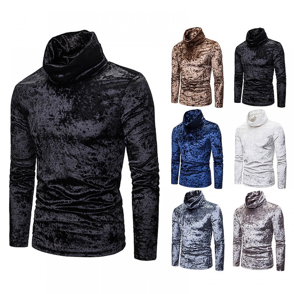 Men's Diamond Velvet Plus Size Plus Velvet Warm High Neck Long Sleeve T-Shirt Bottoming Shirt