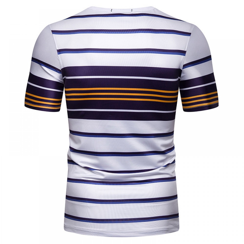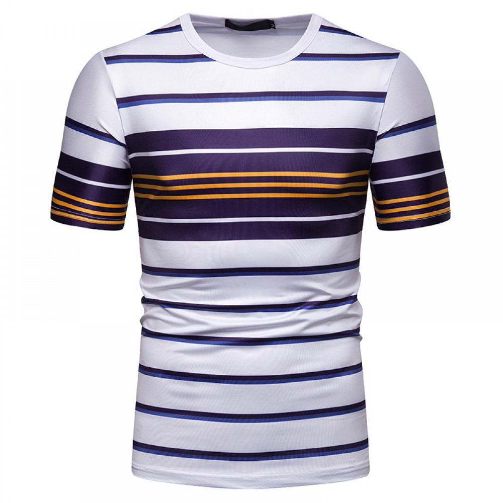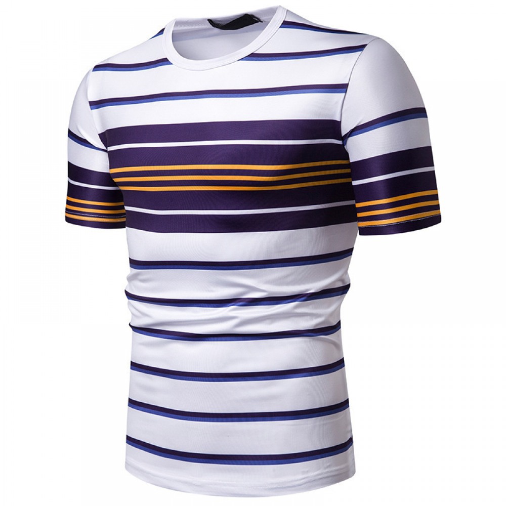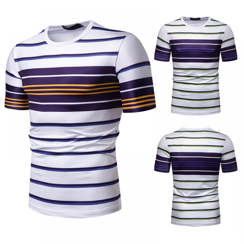 New Summer Men's Short-Sleeved T-Shirt Men's Contrast Striped Slim Casual T-Shirt