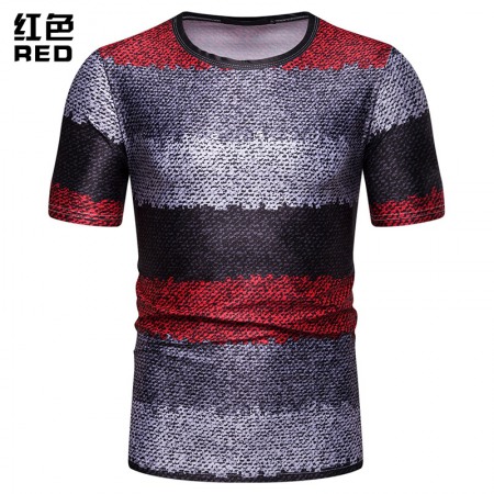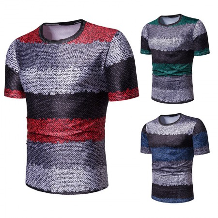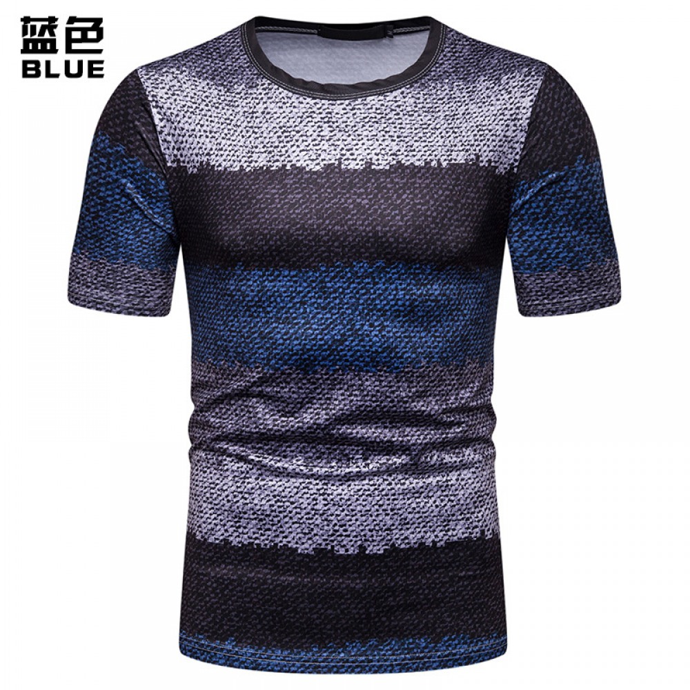 New Summer Men's Short-Sleeved T-Shirt Men's Contrast Striped Slim Casual T-Shirt