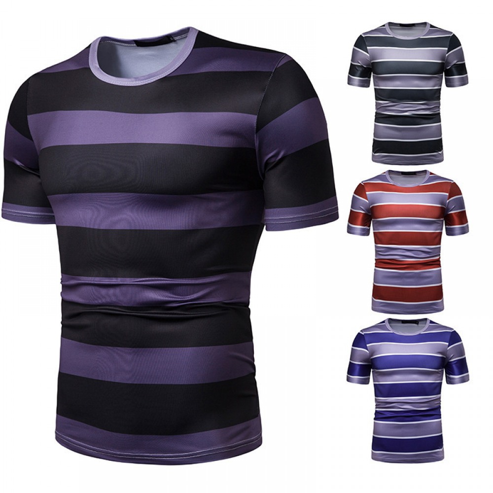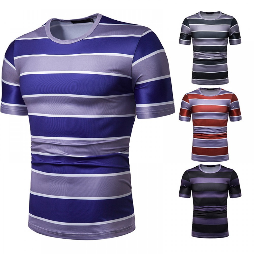 New Summer Men's Short-Sleeved T-Shirt Mens Contrast Striped Slim Casual T-Shirt